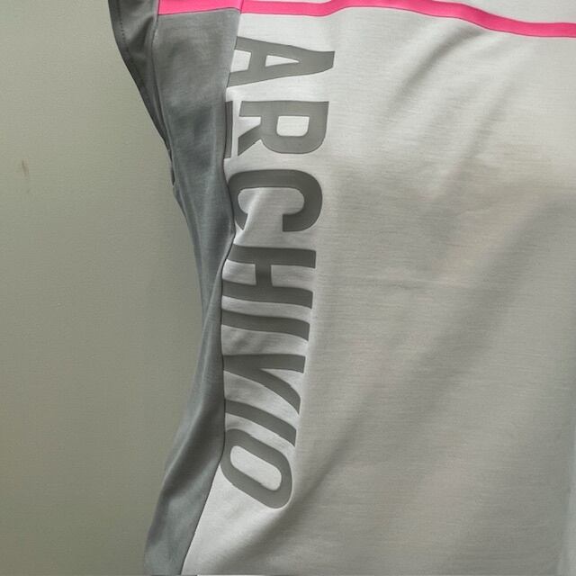 甘さを抑えたフリルとダイナミックなロゴプリントが華やか。